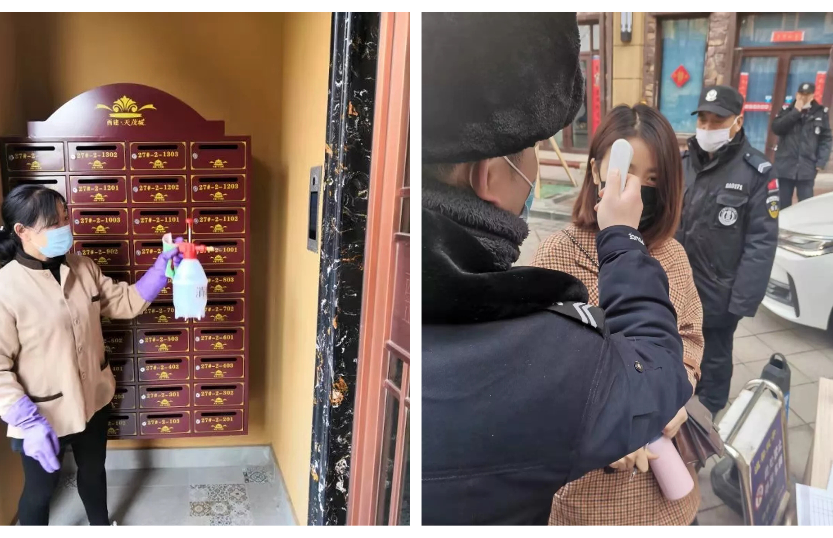 2、暫時封閉小區西門、東門及北車庫入口,留一個主要出入口。所有小區業主及備案車輛從南門(續建一期大門)進出。保安嚴格把控,人人做登記,人人測體溫,對車輛進行消毒,對非小區業主進行勸退。同時提醒廣大業主戴口罩,無緊急事情不要外出。