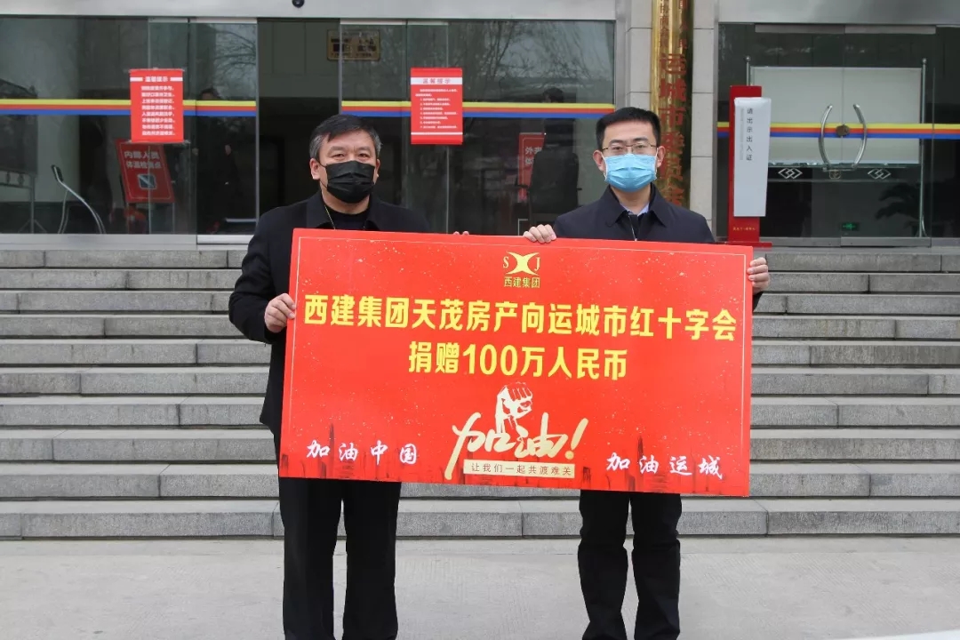 為了抗擊疫情、共渡難關,西建集團天茂房產通過運城市紅十字會向“運城市第二醫院(20萬元)、運城市中心醫院(15萬元)、運城市第一醫院(15萬元)、運城市公安局鹽湖分局(10萬元)、芮城縣人民醫院(10萬元)、芮城縣中醫醫院(10萬元)、芮城縣疾病預防控制中心(10萬元)、芮城縣公安局(10萬元)”共捐贈人民幣100萬元,用于我市新型冠狀病毒感染的肺炎疫情防控工作和其他公益事業。