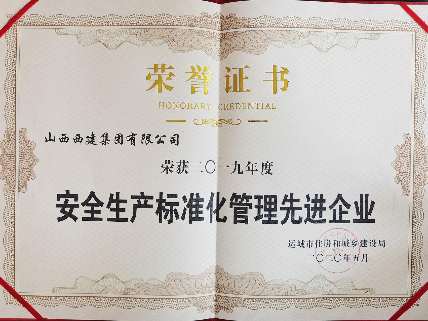 ▲山西西建集團有限公司榮獲“2019年度安全生產標準化管理先進企業”