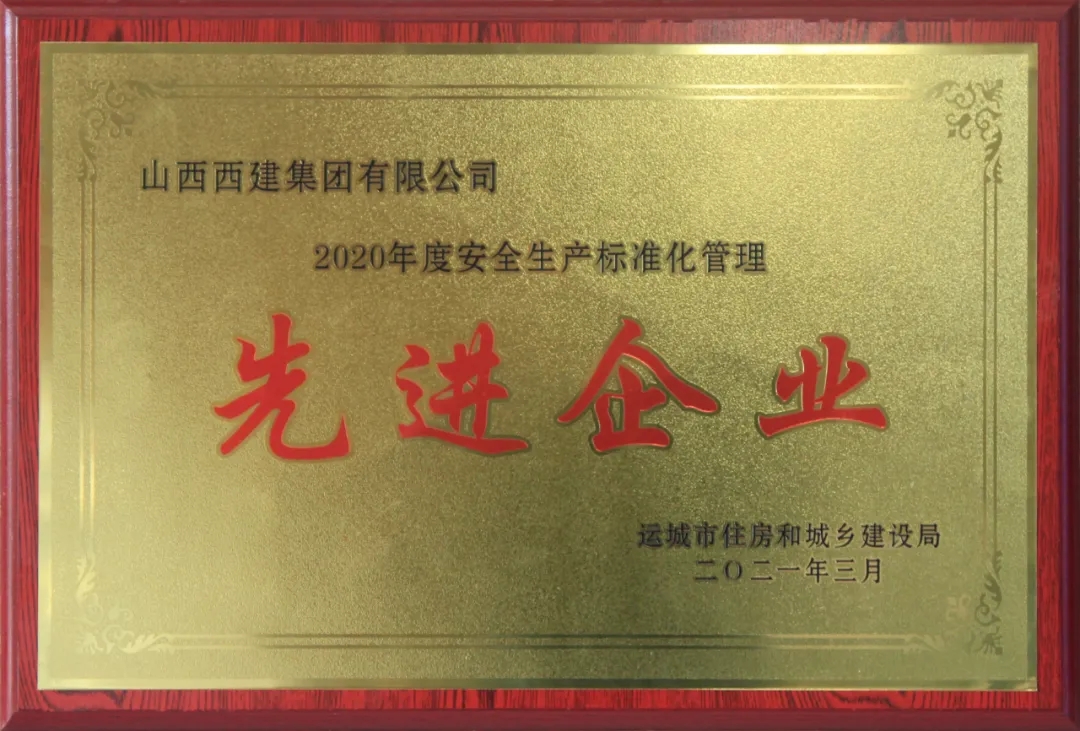 ▲山西西建集團有限公司榮獲“2020年度安全生產標準化管理先進企業”