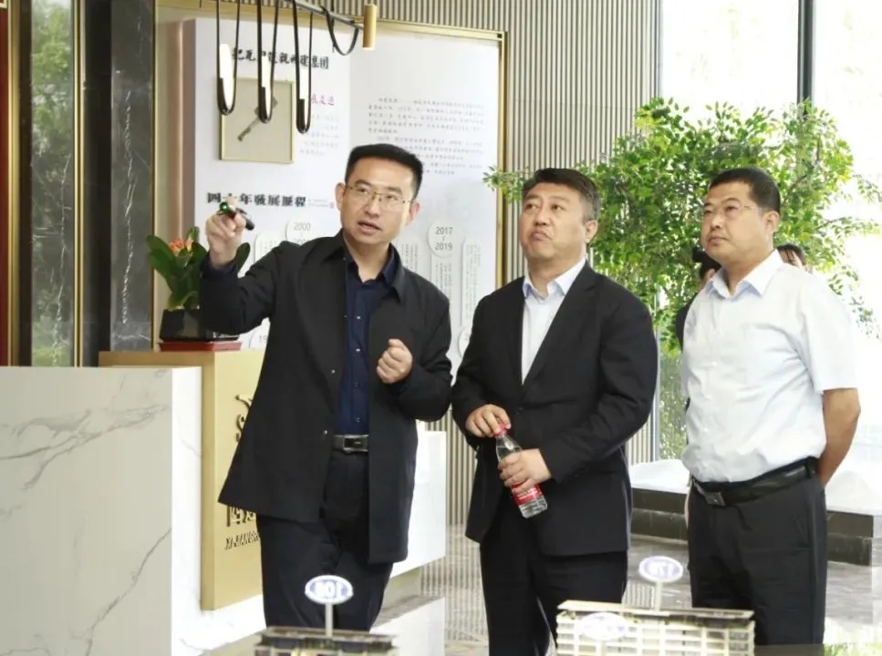 7日上午,在劉忠森的接待陪同下,賈行長(zhǎng)一行參觀了西建·天茂國(guó)賓府展示中心,了解了國(guó)賓府的規(guī)劃建設(shè)情況以及西建集團(tuán)四十載的發(fā)展歷程、工程業(yè)績(jī)、社會(huì)奉獻(xiàn)、商業(yè)教育、文化活動(dòng)等方面的具體情況。