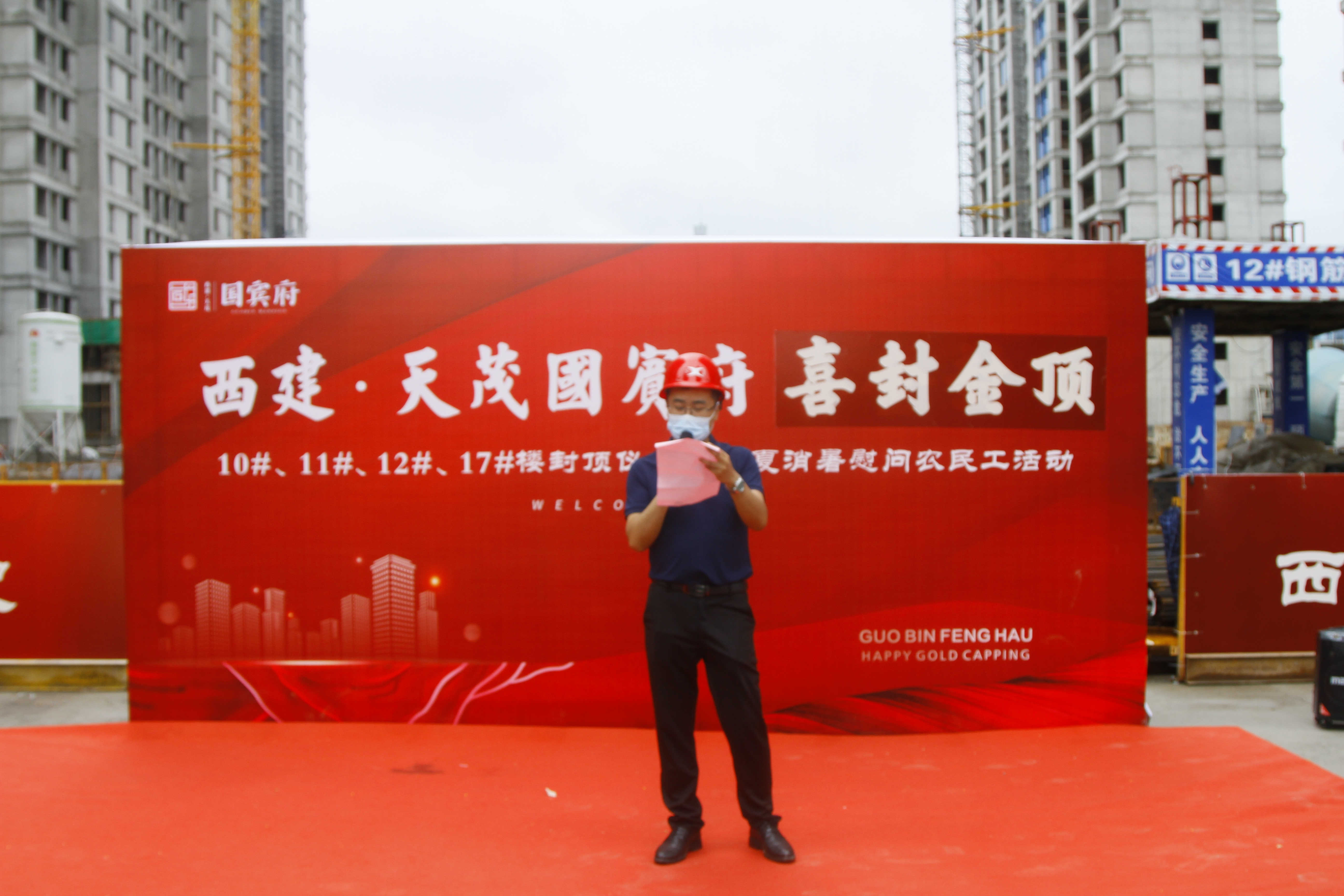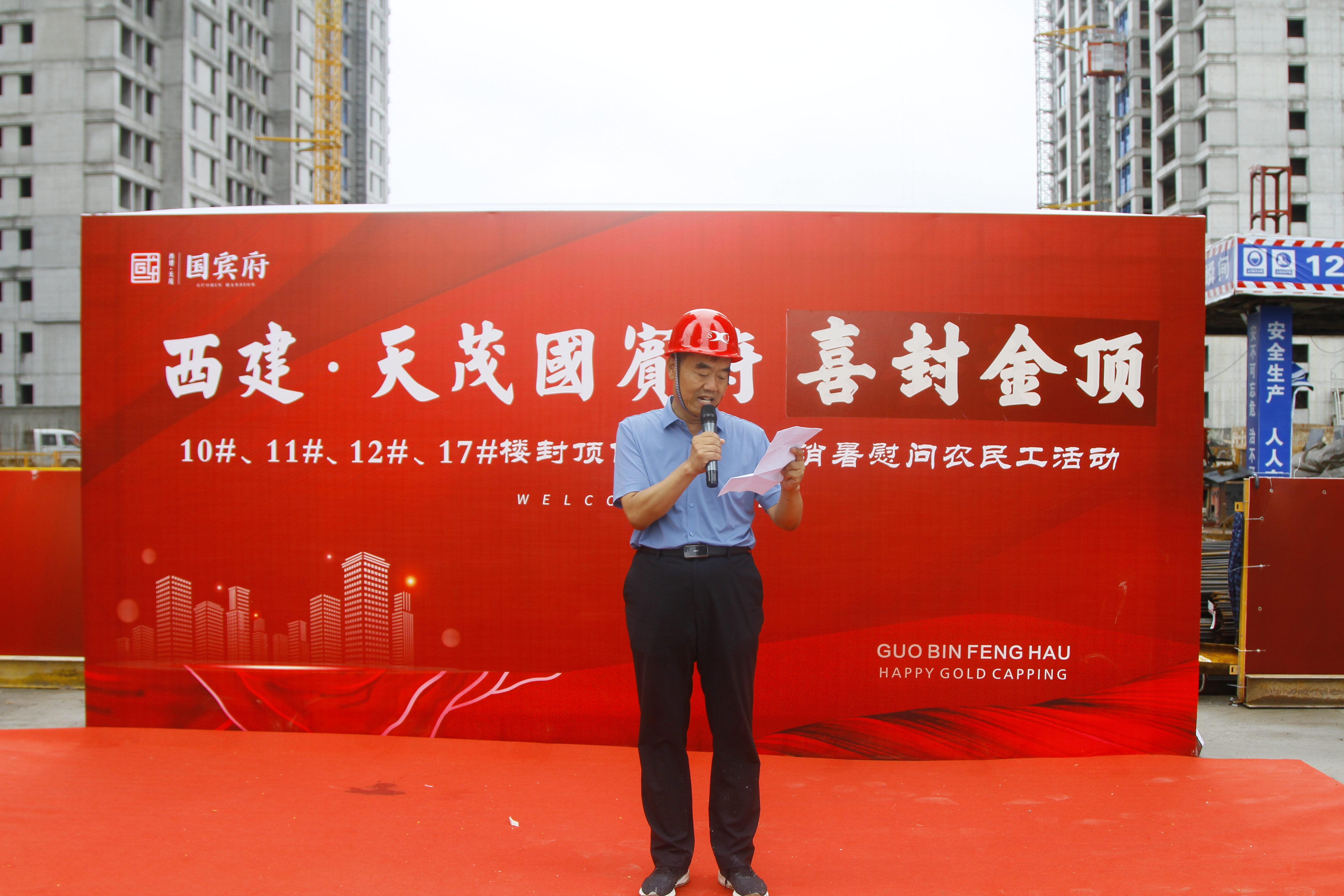 7月16號(hào),西建·天茂國(guó)賓府的工地上塔吊聳立、人頭攢動(dòng),社會(huì)各界人士齊聚這里,熱烈慶祝西建·天茂國(guó)賓府10#、11#、12#、17#號(hào)樓喜封金頂,標(biāo)志著西建·天茂國(guó)賓府一期樓棟基本全部封頂!此次活動(dòng)在7月16號(hào)上午正式開(kāi)始,除活動(dòng)工作人員外,特邀農(nóng)民工兄弟、業(yè)主代表、媒體精英、建設(shè)方代表等嘉賓蒞臨活動(dòng)現(xiàn)場(chǎng)共享喜悅。