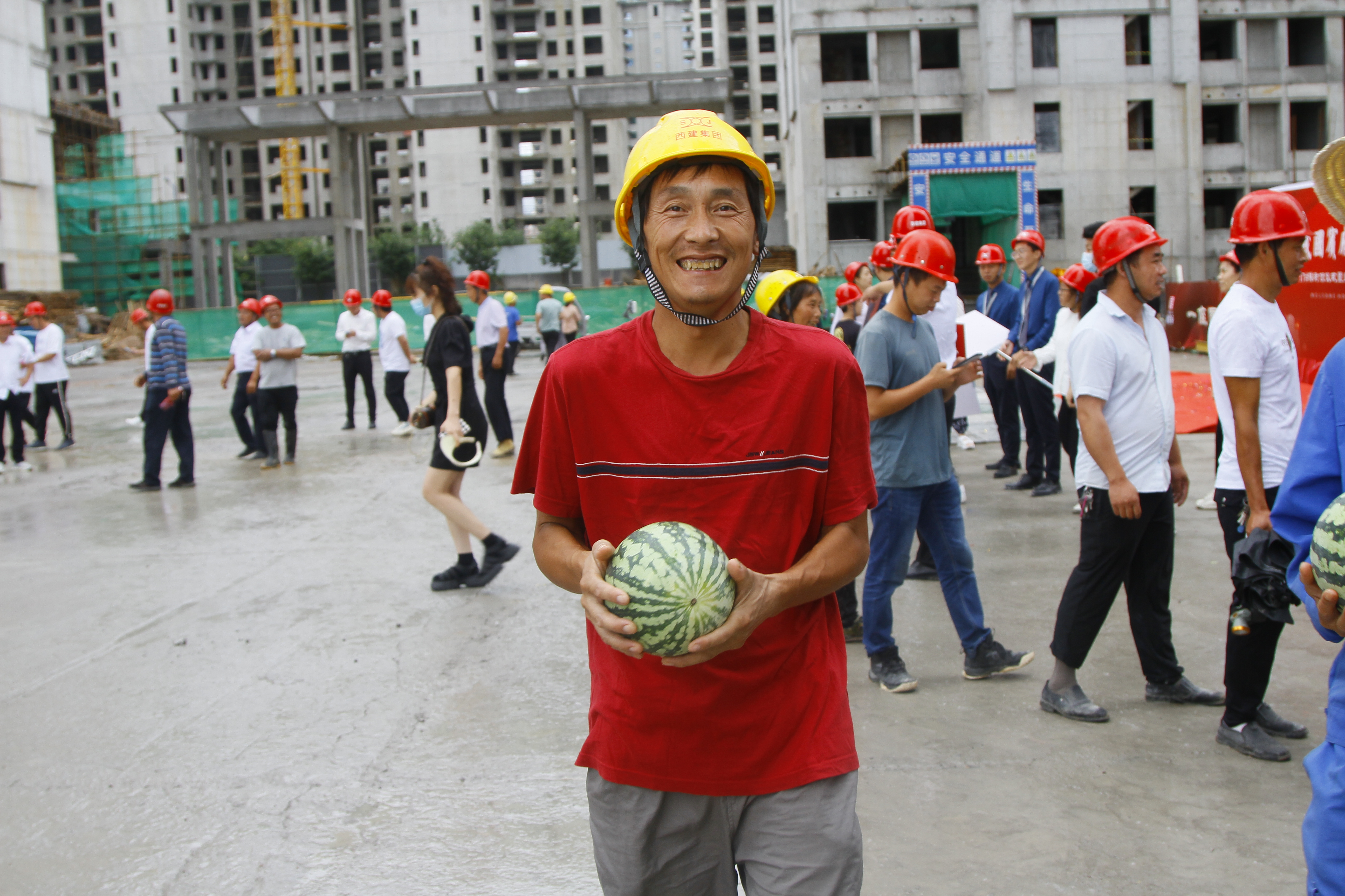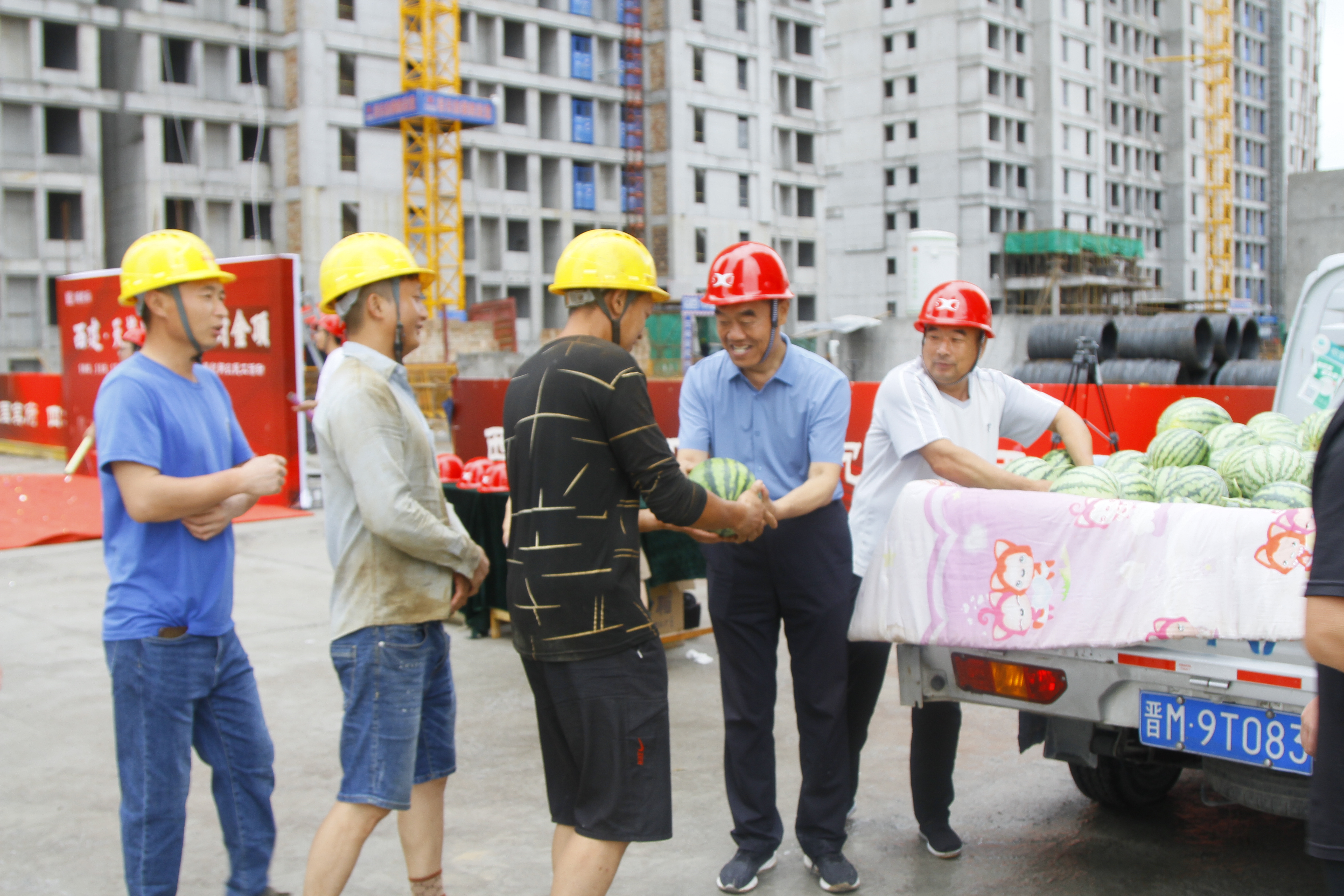 此次活動(dòng)特意邀請(qǐng)農(nóng)民工兄弟代表參加,并為他們發(fā)放消暑用品,致以感謝