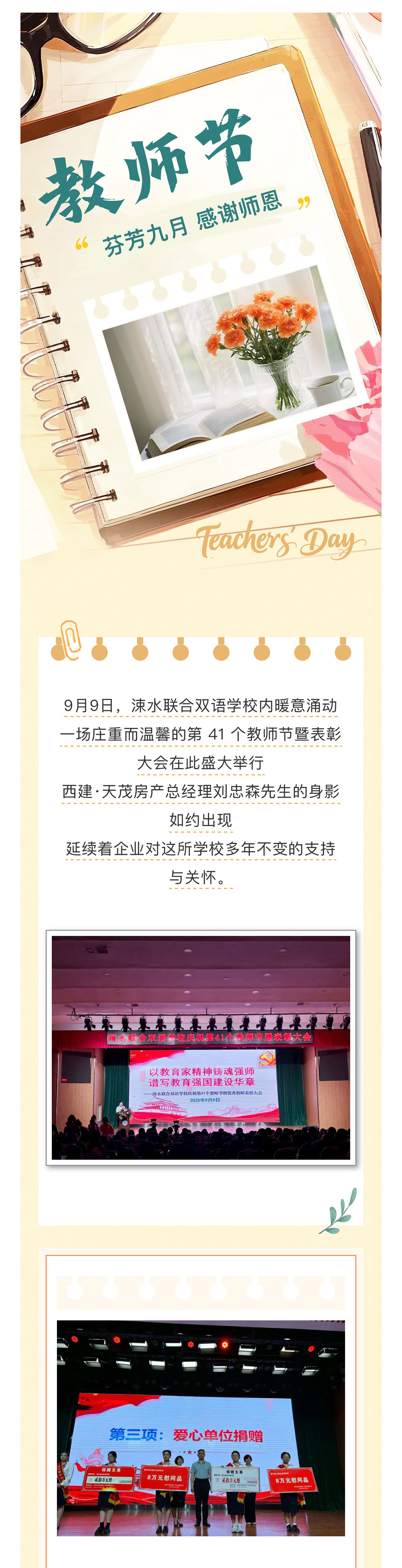 情系教育 筑夢未來 | 西建·天茂房產(chǎn)劉忠森總經(jīng)理受邀出席涑水教育集團(tuán)第 41個教師節(jié)慶典
