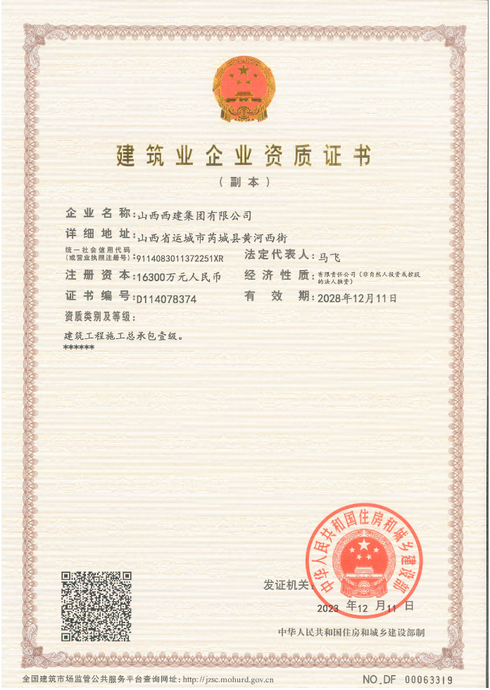 建筑施工總承包壹級資質(zhì)